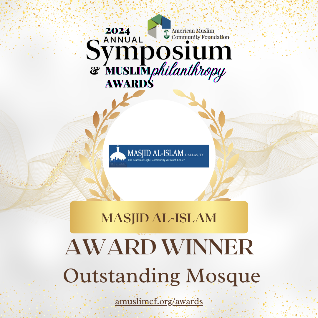 The Award for Outstanding Mosque honors an organization that demonstrates outstanding commitment through encouragement and motivation of others to make philanthropic gifts, take on leadership roles, and increased community involvement of Muslim-based organizations.