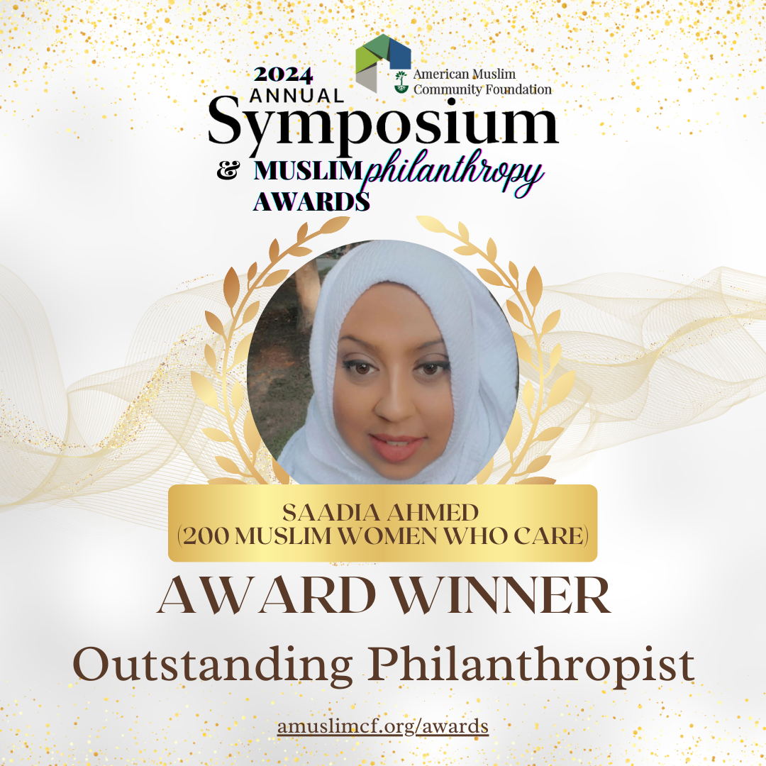 The Award for Outstanding Nonprofit honors an organization that demonstrates outstanding commitment through financial support and through encouragement and motivation of others to take leadership roles toward philanthropy and community involvement of Muslim-based organizations.