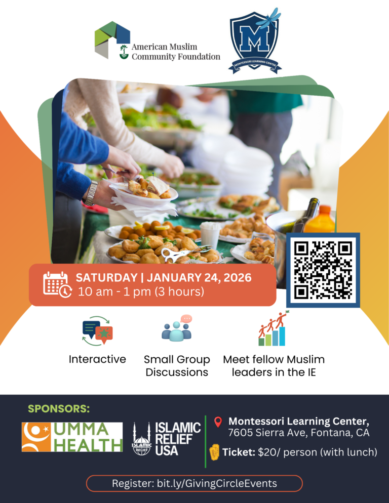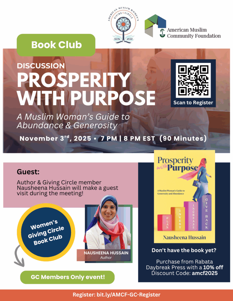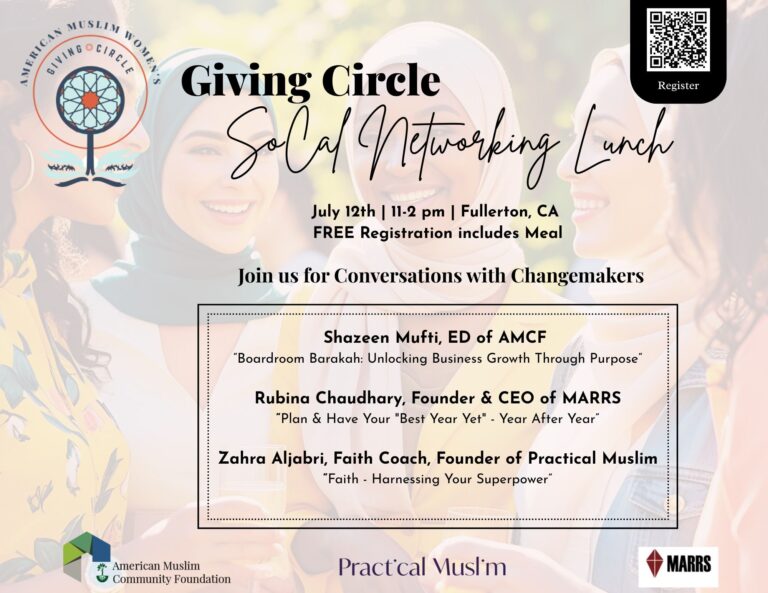 AMCF Giving Circle & The Nour Company are partnering to present monthly meet-ups to encourage networking and collaboration amongst Muslim Women Changemakers. Join us to learn about AMCF, giving circles, build community, share tips, and enjoy refreshments!