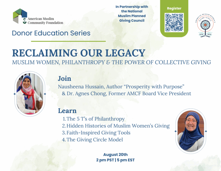 Join us on Wednesday, December 18th @ 3 pm PT | 6 pm ET for the first in our new series of educational webinars. This month AMCF’s own Strategic Nonprofit Consultant, Shazeen Mufti, will lead an enlightening talk on how to begin your philanthropic journey!