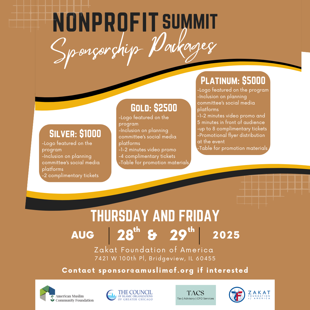 Each level of sponsorship helps offset the costs of planning and executing the Nonprofit Summit 2025 while building a robust platform for Muslim philanthropy to grow.